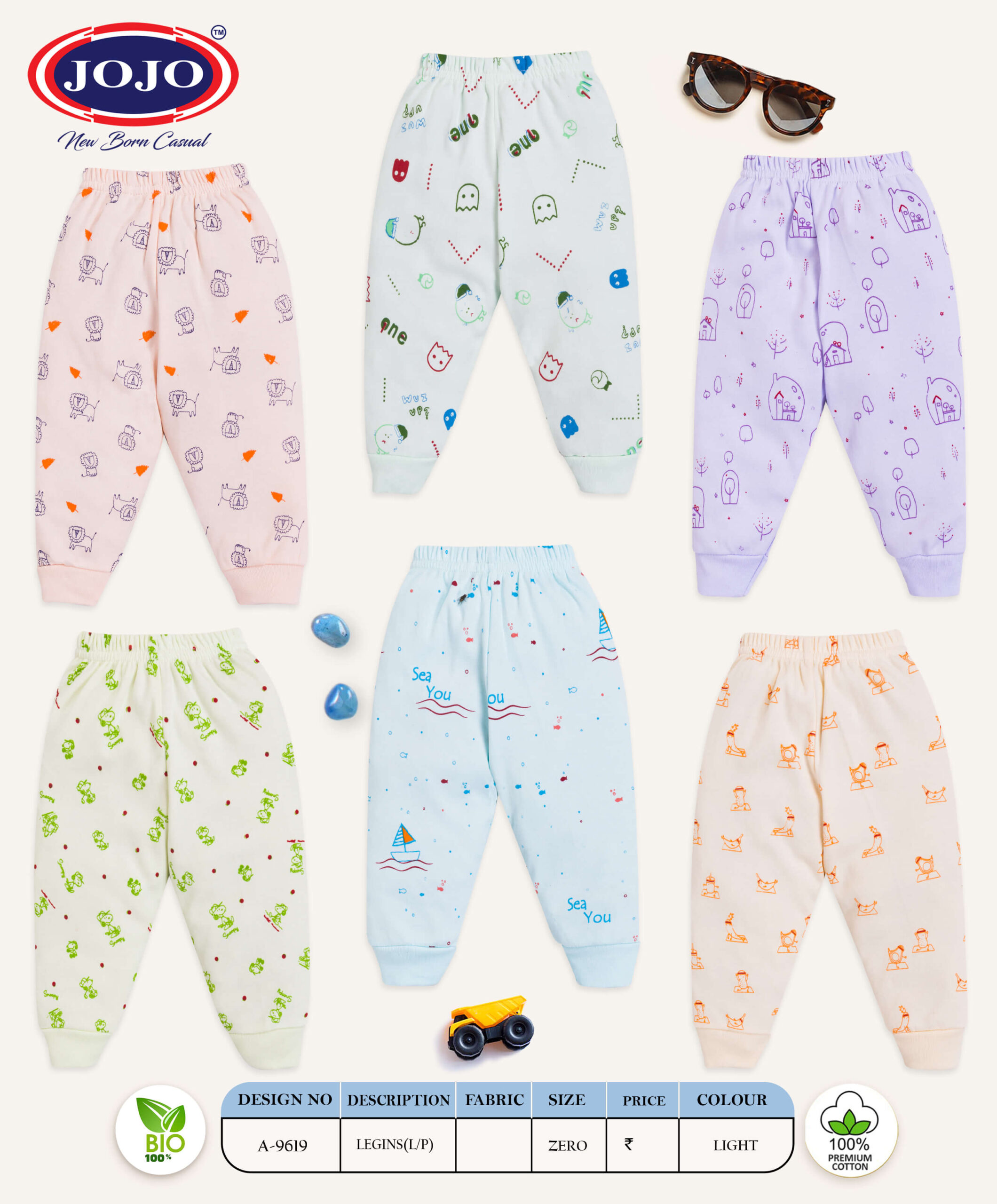 These leggings are crafted from 100% bio-washed premium cotton – a naturally soft, skin-safe fabric perfect for newborns with sensitive skin. The breathable material ensures your baby remains cool during warmer days and cozy on breezy evenings.