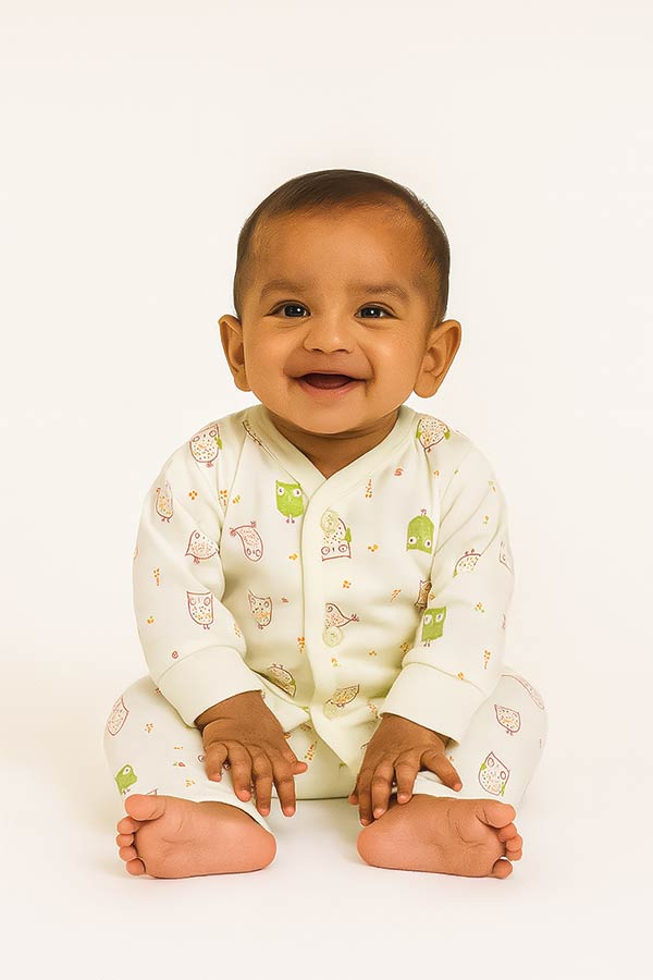 Introducing the Full Sleeve Vest with Teddy Bear and Moon Graphics – a charming addition to your newborn’s wardrobe that blends comfort, cuteness, and everyday practicality. With playful animal-themed prints and made from 100% bio-washed premium cotton, this vest offers everything a baby needs for cozy days and restful nights.