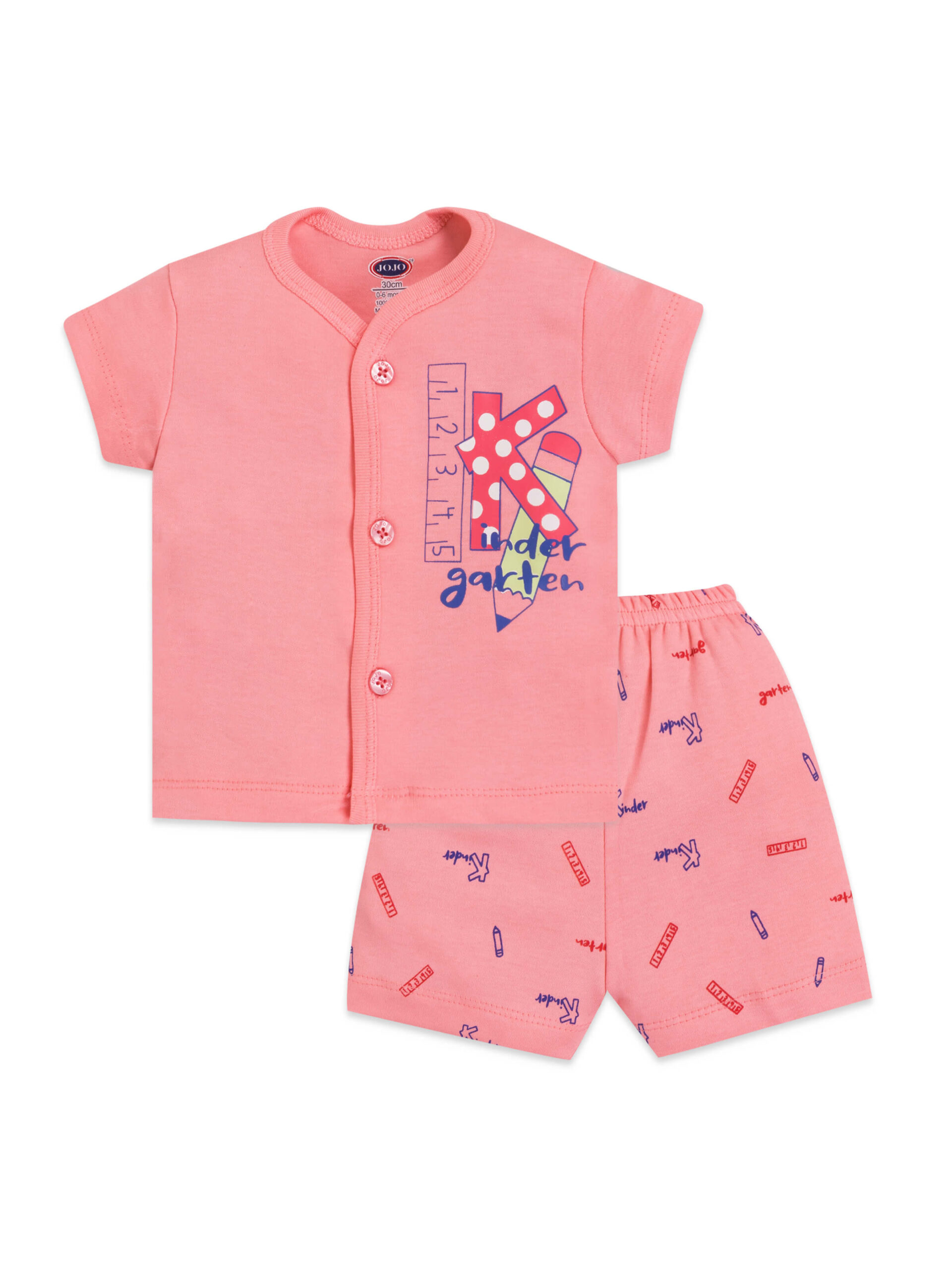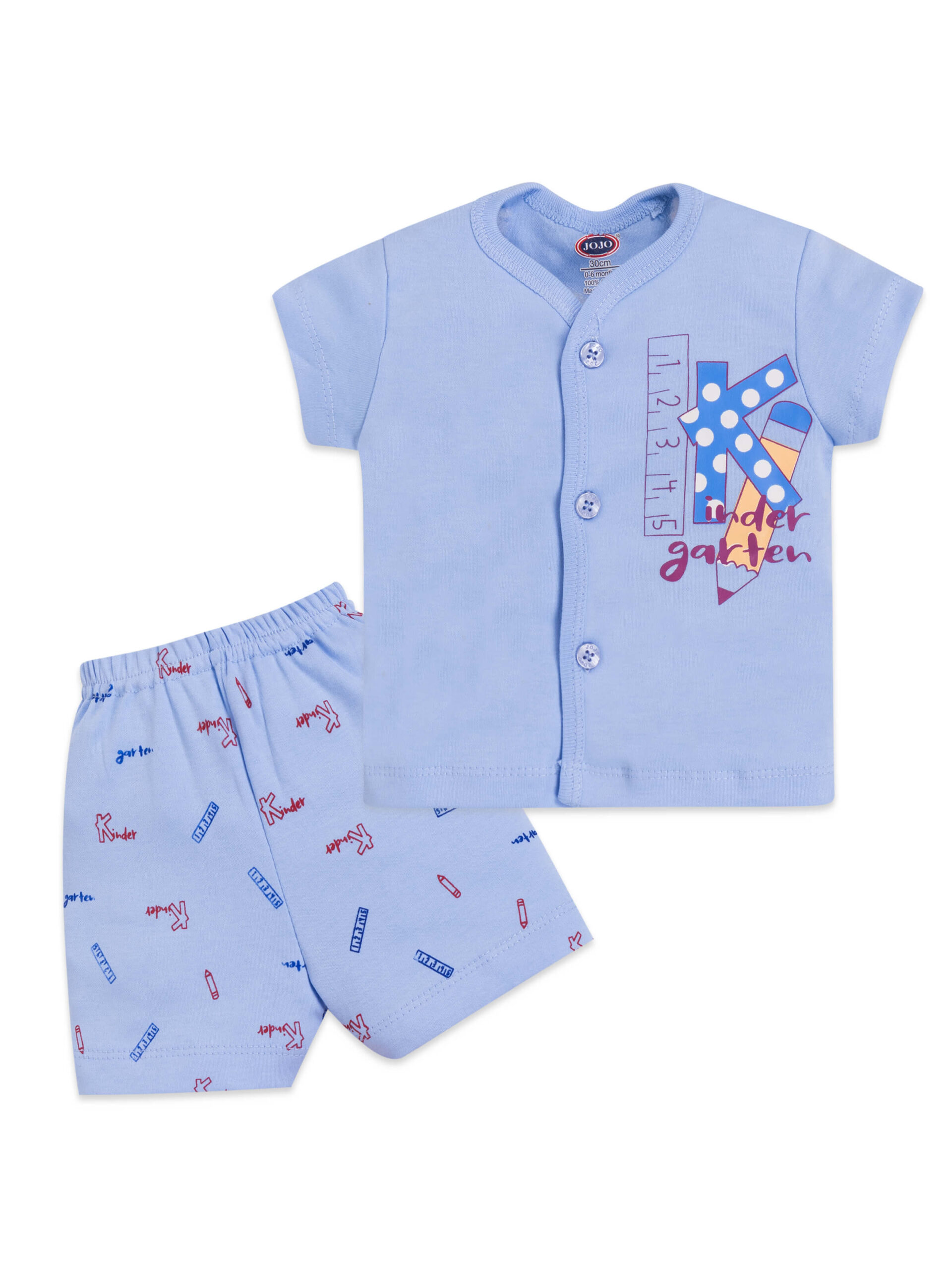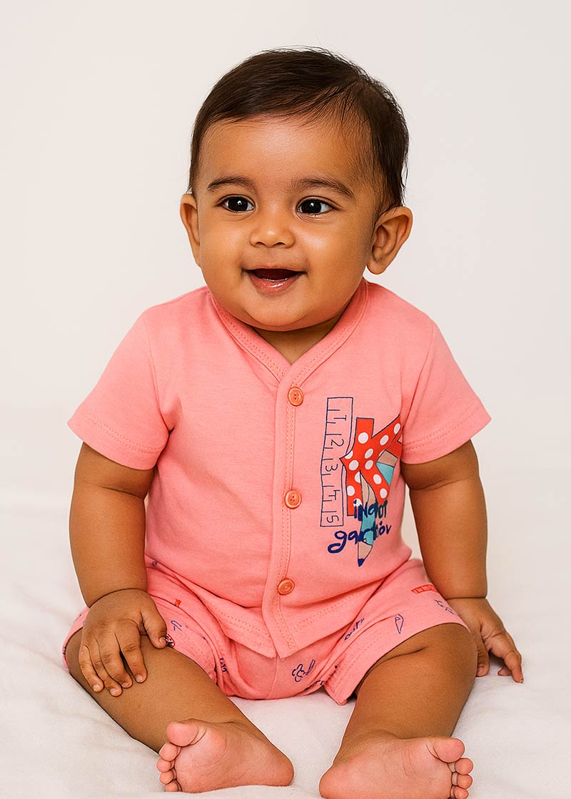 With parents in mind, this set is crafted for easy dressing and all-day usability. It’s perfect for summer days, lounging at home, or casual outings. Dress your baby in joy, comfort, and playfulness with this Kindergarten Suit. A sweet start for your little one’s wardrobe – where learning meets comfort!