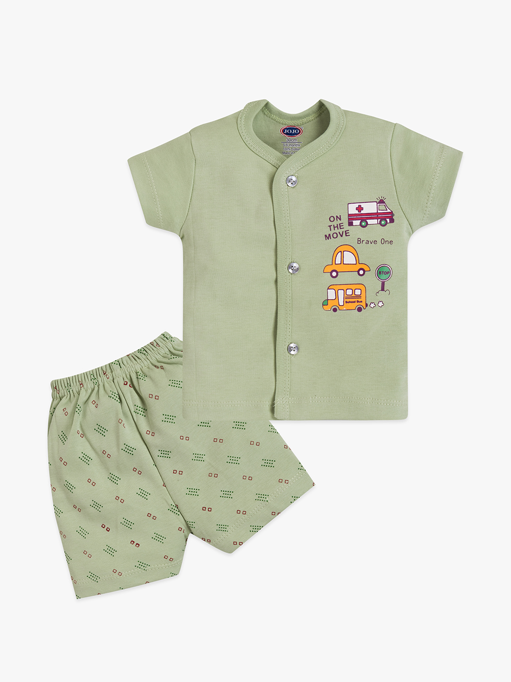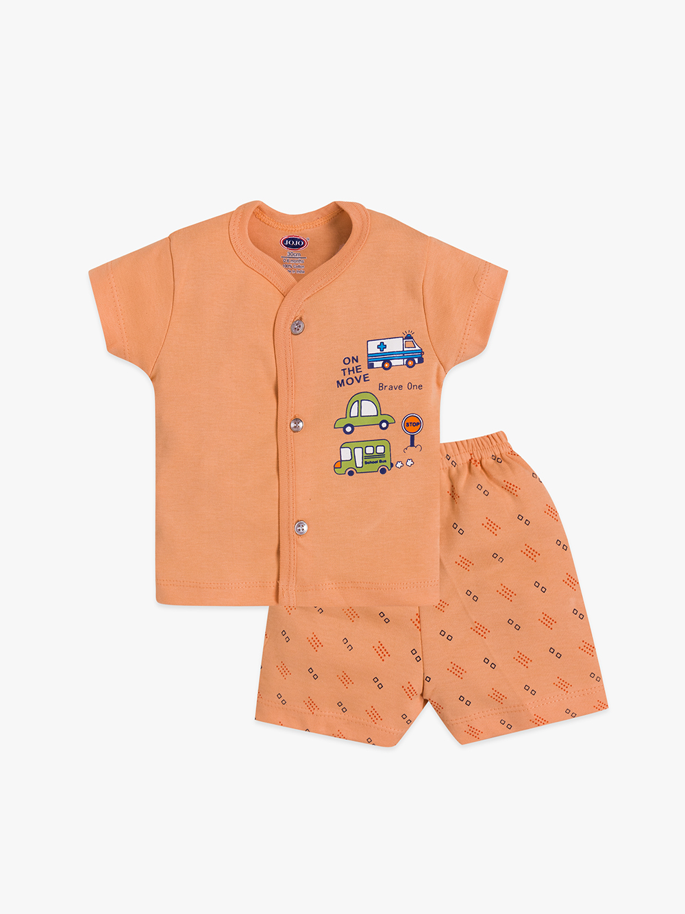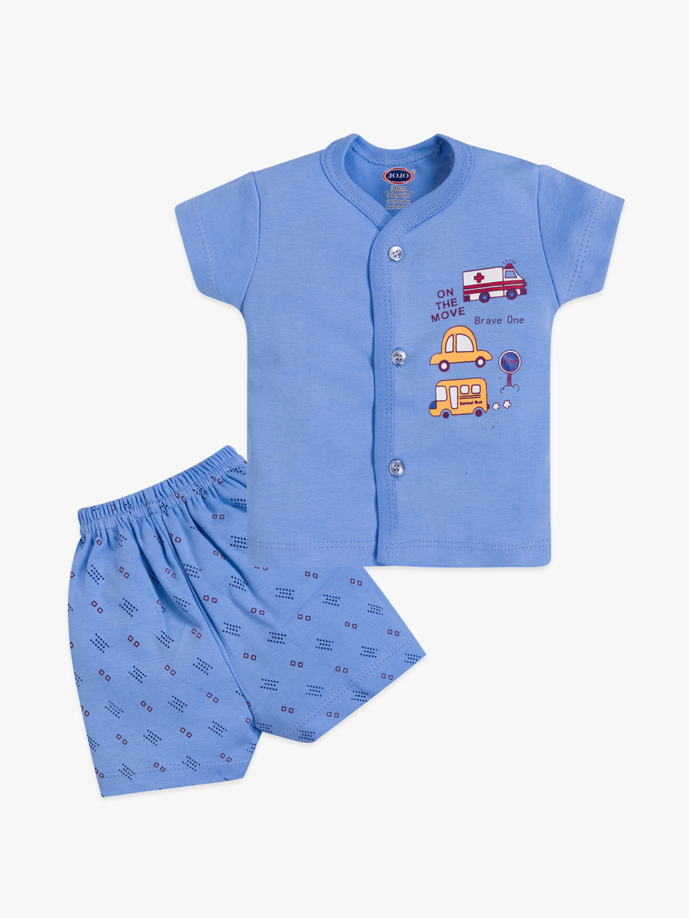 Let your little explorer roll through the day in comfort with our On the Move Baby Cotton Suit. Featuring fun vehicle prints and bold colour blocks, this set includes a soft front-open t-shirt and matching elastic shorts — made from 100% bio-washed premium cotton for breathable, all-day wear.