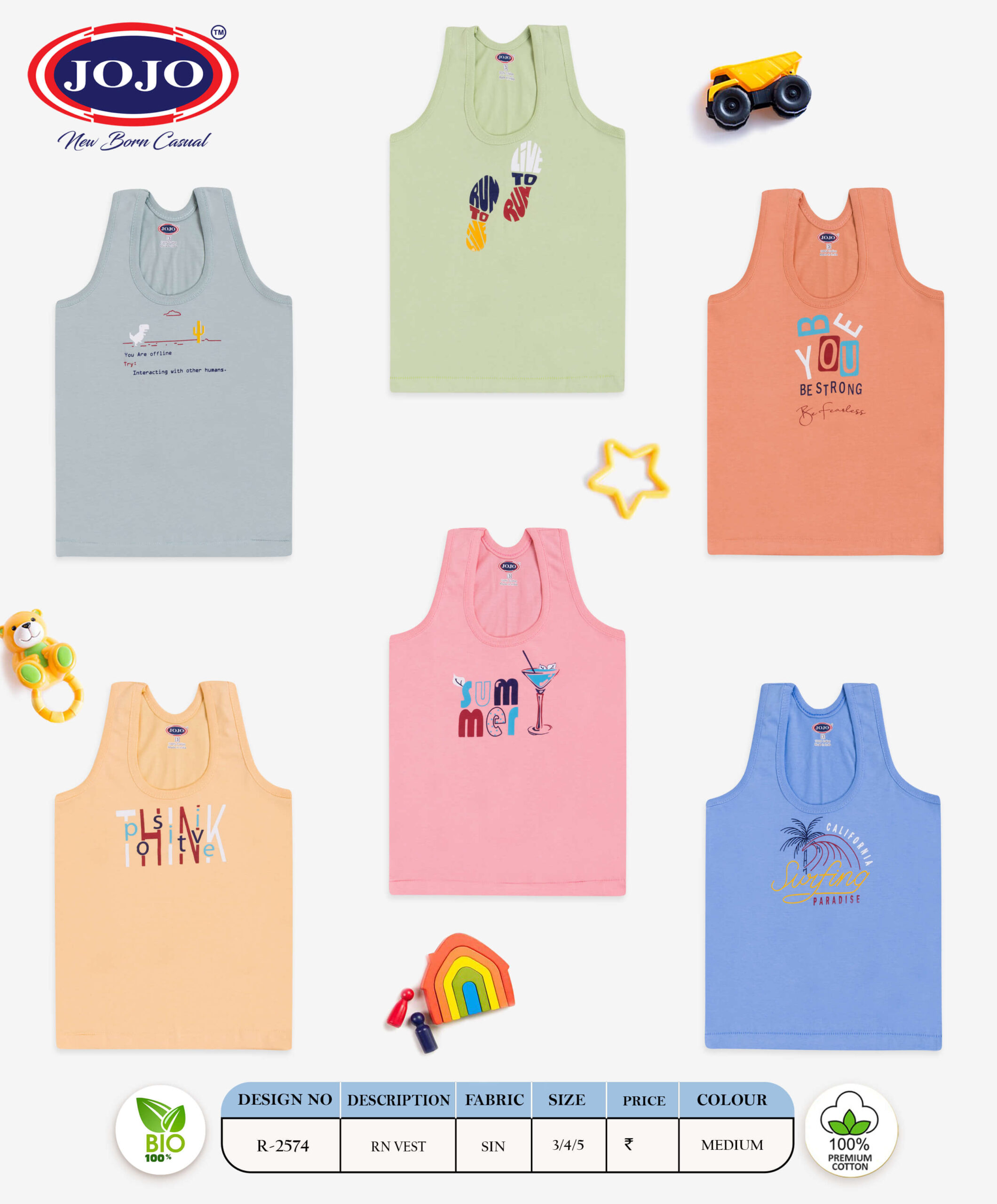 At JOJO, your child’s comfort is a top priority. This vest collection is made from 100% bio-washed premium cotton, offering a feather-soft feel that’s gentle on delicate skin. It ensures breathability, absorbency, and flexibility – ideal for warm days and active play.